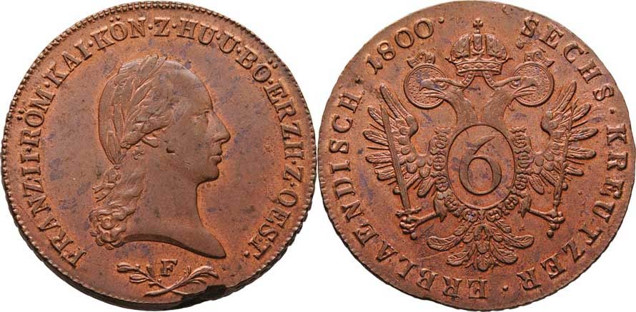 Cu 6 Krejcar 1800 F, Hall, 13.988g, vada materiálu na hraně, nep.nedor., nep.úhoz, pěkná patina, téměř R!