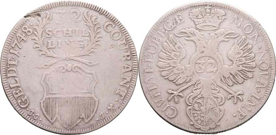 32 Schilling 1748 JJJ, KM.162 (Ag750), 17.799g, dr.vady materiálu, patina R!
