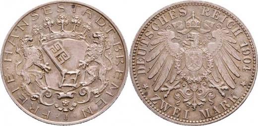 2 Marka 1904 J, KM.250 (Ag900, 100.000 ks), 11.144g, nep.hr., nep.rysky, pěkná patina, téměř R!