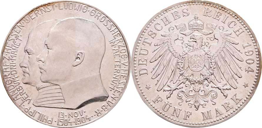 5 Marka 1904 - jubilejní, KM.373 (Ag900, pouze 40.000 ks), 27.718g, nep.hr., dr.rysky R!