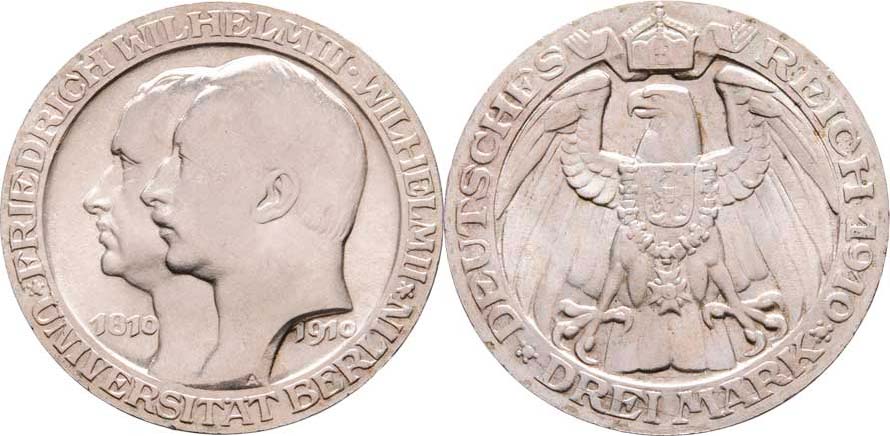 3 Marka 1910 A - universita Berlín, KM.530 (Ag900), 16.665g