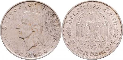 2 Marka 1934 F - Schiller, KM.84 (Ag625), 8.008g, dr.hr., vlas.rysky, skvrny, patina