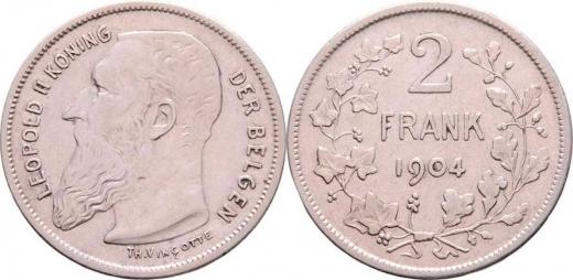 2 Frank 1904 - DER BELGEN - sign. s tečkou, KM.59.1, 9.995g, dr.hr., dr.rysky
