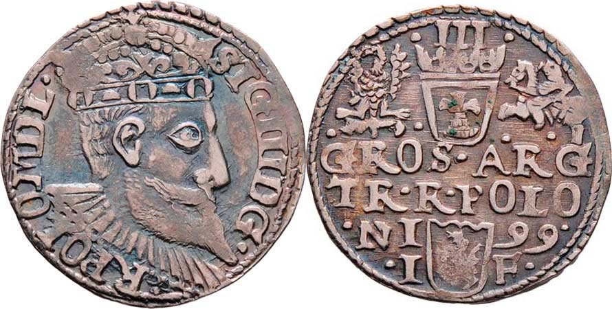 III Groš (15)99, Olkusz, Sa.5390 (obr.2834), Kop.1136, 2.298g, nedor., patina, téměř