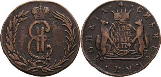 2 Kopějka 1774 KM - pro Sibiř, minc. Kolyvan, Cr.4 (měď) 10.492g, dr.vady materiálu, mírně kor., pat. R!