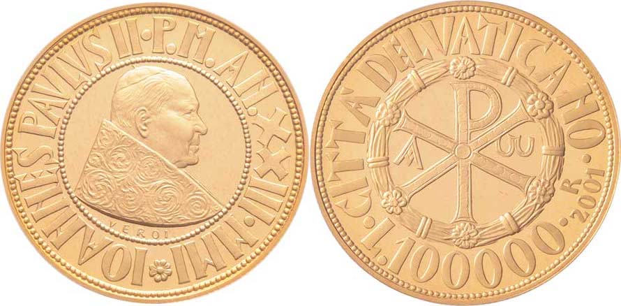 100.000 Lira 2001 R - Christogram ve věnci, Y.391 (Au917, 15.00g, pouze 6.000 ks), kapsle RR!