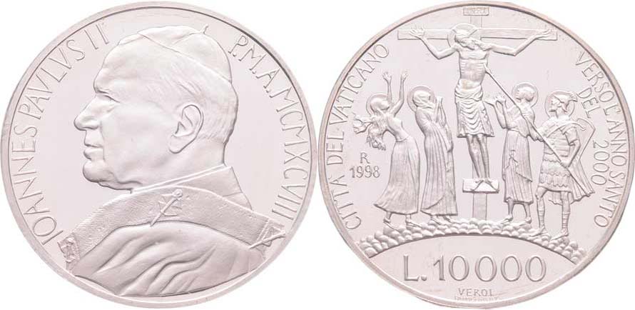 10.000 Lira 1998 R - Ukřižování Krista, Y.291 (Ag835, 22.0g, pouze 30.000 ks), kapsle