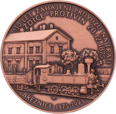 Novotný - 130 let trati Zdice-Protivín 1875/2005 - sada dvou medailí v krásné dřevěné etui - patinované Ag925, 50mm, 79.118g, patinovaná měď 50mm, 65.316g
