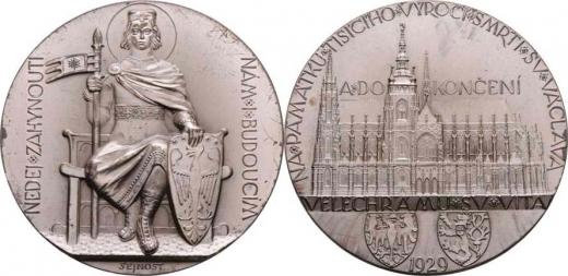 AR medaile na milenium svatého Václava a dokončení chrámu sv.Víta v Praze 1929, Sign.Šejnost, Punc., patinované Ag987, 70mm, 123.063g, téměř
