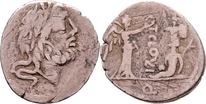 AR Quinár, Hlava Jupitera zprava / Victoria věnčí trofej nad sedícím zajatcem, "T.CLOVLI.Q.", Alb.1140, Crawford.332/1c, Seaby.Cloulia.2, mírně exc., dr.škr.
