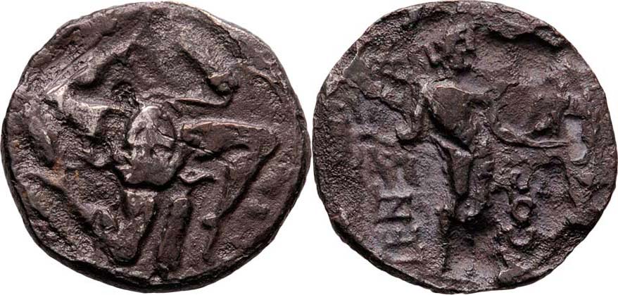 AR Denár, hlava Medusy a triskeles / stojící Jupiter, nápis "LENT.MAR.COS.", Crawford.445/1a, Alb.1378, Seaby.Cornelia.64, 1378, koroze, tmavá patina R!
