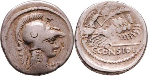 AR Denár, Hlava Minervy zprava/ Victoria na quadrize, nápis "C.CONSIDI.", Crawford.465/5, Seaby.Considia.5, Alb.1446, mírně exc., nedor., kontramarky, patina