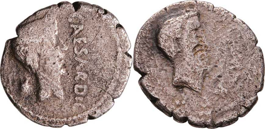 AR Denár, César zprava, nápis "CAESAR.DIC." / Marcus Antonius zprava, nápis "M.ANTON.IMP.", Seaby.3, Crawford.488/1, Alb.1550, exc., mírně kor., pat. RR!
