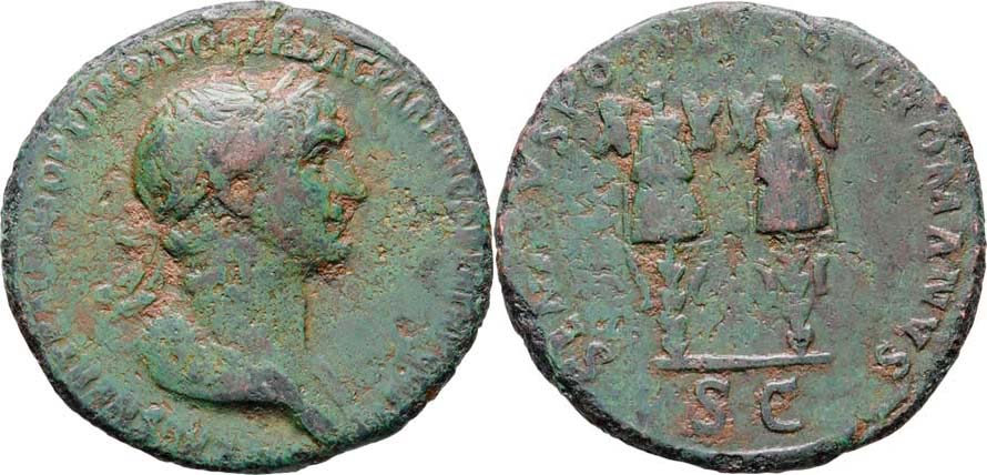 AE As, Rv:"SENATVS.POPVLVSQVE.ROMANVS.S.C.", dvě trofeje, S.neuv., RIC.681 - mincov. Řím - ražba z let 114 - 117, nedor., mírně kor., patina R!