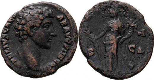 AE As, Rv:"HILARITAS.S.C.", stojící Hilaritas, S.neuvádí, RIC.1260 - minc.Řím - ražba z let 147-148, nepravidelný oválný střížek, mírně kor., patina R!