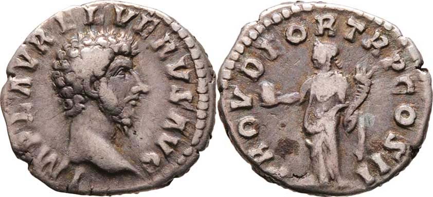 AR Denár, Rv:"PROV.DEOR.TR.P.COS.II." stojící Providentia, podobný jako S.1439, RIC.463 - mincovna Řím - ražen od března do prosince 161, pěkná patina