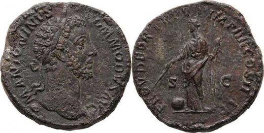 AE Sestercius, Rv:"PROV.DEOR.TR.P.VII.IMP.IIII.COS. III.P.P.S.C.", st. Providentia, S.neuvádí, RIC.330a - mincovna Řím - ražba z let 181 - 182, nep.kor., pat.