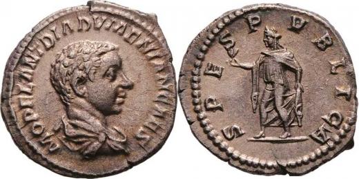 AR Denár, Rv:"SPES.PVBLICA.", stojící Spes, RIC.117, S.1972 - mincovna Řím - blíže nedatován, nepravidelný okraj střížku, pěkná patina R!