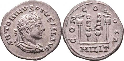 AR Denár, Rv:"CONCORDIA.MILIT.", dvě standarty a dvě vexilla, S.1992, RIC.187 - mincovna Antiochia - blíže nedatován, pěkná patina R!