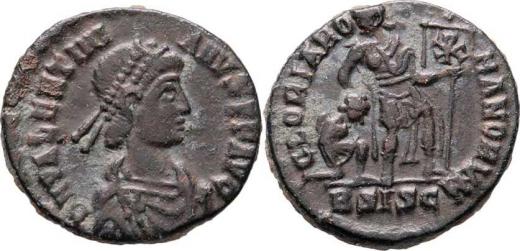 AE3, Rv:"GLORIA.ROMANORVM." císař se zajatcem, S.neuvádí, RIC.38a - Siscia - 2.dílna - ražba z let 384 - 387, pěkná patina, téměř