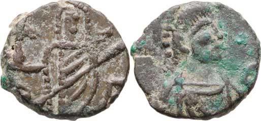AE4, Rv: trůnící císařovna zpředu, S.neuvádí, blíže neurčitelný (redukovaný střížek), pěkná patina RR!