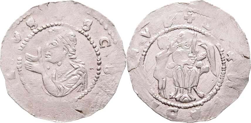 Denár, Ca.556, F.XV/26 (1547) - tečka nad spojenýma rukama svatého Václava, 0.702g, opisy částečně nevyraženy, patina R!