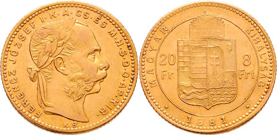 8 Zlatník 1881 KB, 6.436g, nep.hr., nep.rysky, pěkná patina