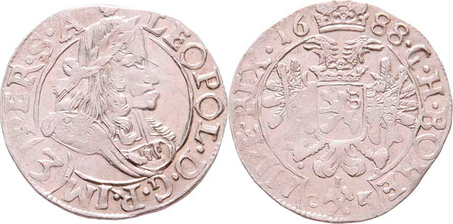 3 Krejcar 1688 CIK, K.Hora-Krahe, Nech.306, MKČ.1455, 1.663g, krajový střížek, nedor., nep.dvojráz