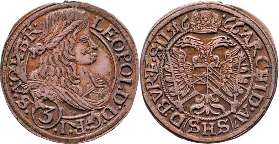 3 Krejcar 1666 SHS, Vratislav-Hammerschmidt, dělení opisů: "...R.I.(3).S.A.../...AV.(SHS).D:BVR.ET.SIL.", MKČ.1619, Nech.736, 1.728g, vada razidla, patina