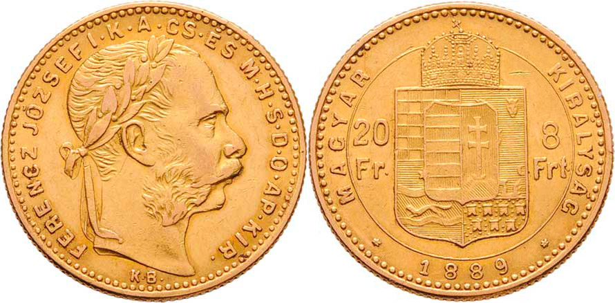 8 Zlatník 1889 KB, 6.429g, nep.hr., nep.rysky, pěkná patina