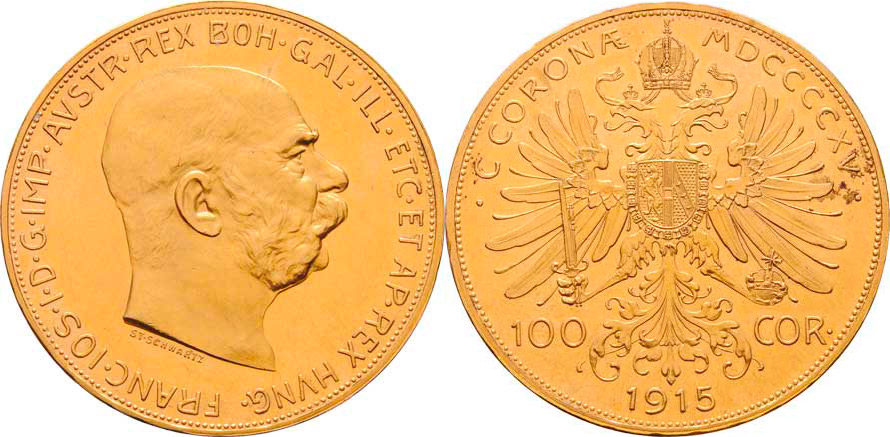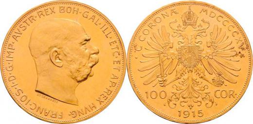 100 Koruna 1915 - novoražba, 33.854g, nep.hr., nep.rysky, pěkná patina, téměř