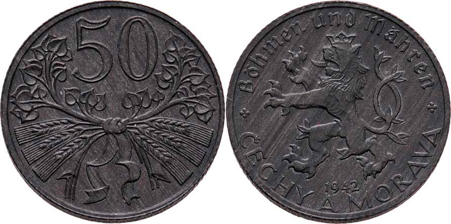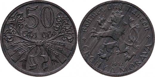 50 Haléř 1942 (Zn), 3.767g, krásná tmavá patina