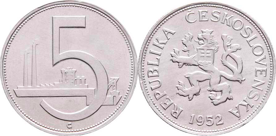5 Koruna 1952 (Al) - nevydaná - pův.ražba, 1.604g R!