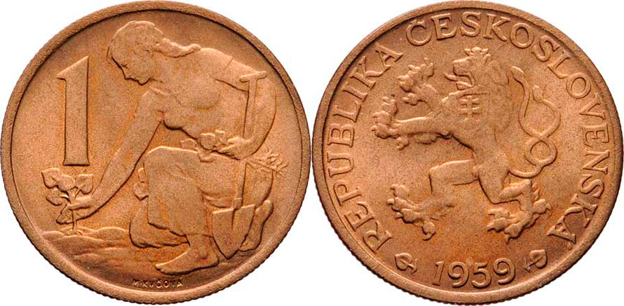 Koruna 1959 (bronz), 4.059g, pěkná patina, téměř