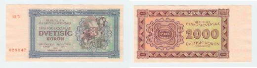 2000 Koruna 1945, série 22Ťí, BHK.69bD "SPECIMEN"