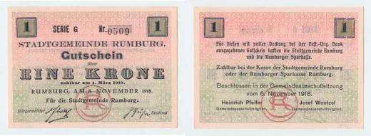Rumburg (Rumburk), 1 Koruna 1918, D-H.178.2.3a, H-H.192.3.1a