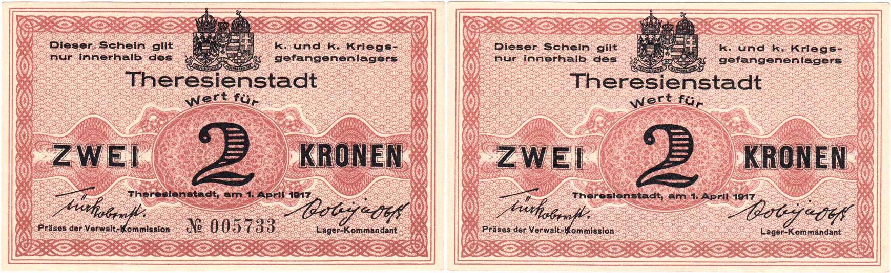 Terezín - pro mužstvo, 2 Koruna 1917, D-H.311/2.6a