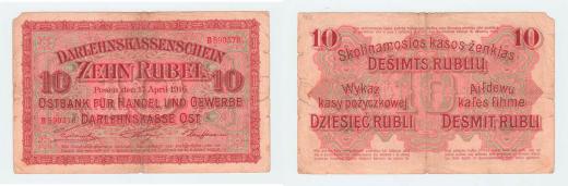 10 Rubl 1916, Posen, Pick.R124, Roc.461 - série B, otřepená, utržený růžek