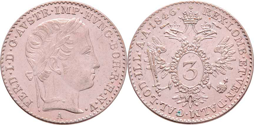 3 Krejcar 1846 A, 1.679g, nep.hr., nep.rysky, patina