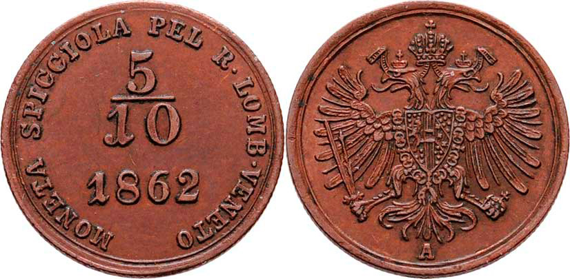 5/10 Soldo 1862 A, 1.577g, pěkná patina, téměř R!