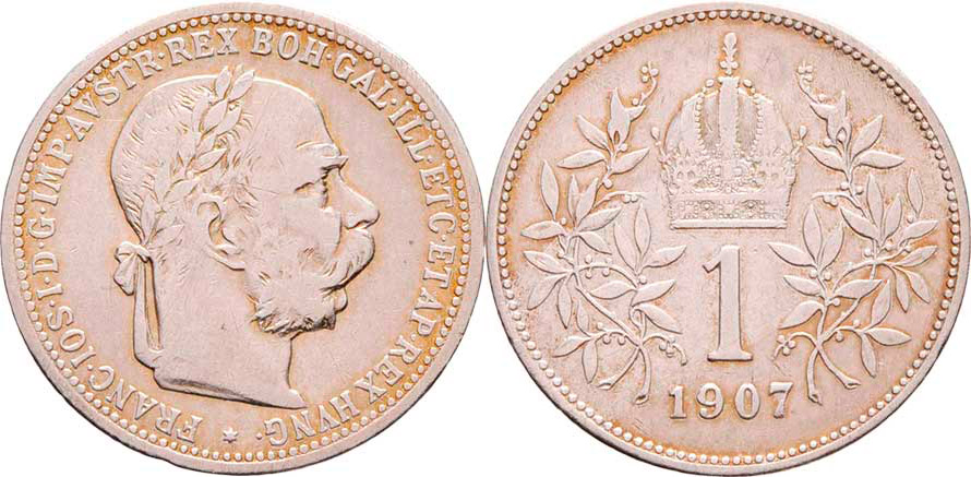 Koruna 1907, 4.886g, dr.hr., dr.škr., vl.rysky, patina RR!