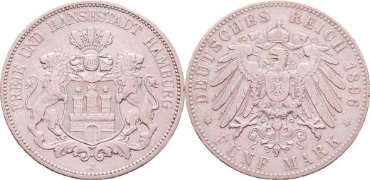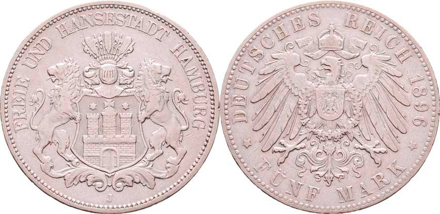 5 Marka 1896 J, KM.293 (Ag900, pouze 16.000 ks), 27.603g, dr.hr., dr.rysky, pěkná patina RR!