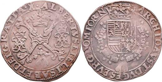 1/4 Tolar b.l., minc. Tournai, podobný jako FW.11314 (místodržící Albert byl mladší bratr Rudolfa II.), 6.775g, napr.okraj, dr.vady mater., nedor., patina