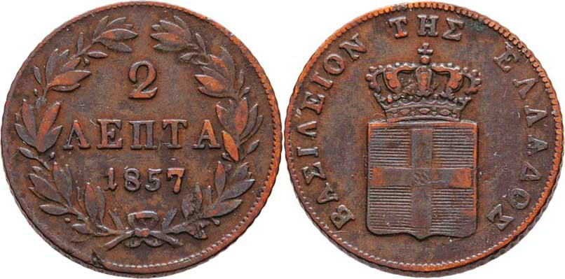2 Lepta 1857, KM.31 (Cu), 2.699g, dr.hr., nep.rysky, pěkná patina R!