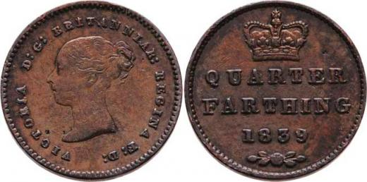 1/4 Farthing 1839, KM.737, SCBC.3953 (Cu), 1.165g, nep.hr., nep.rysky, pěkná patina, téměř