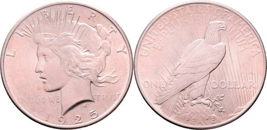 Dolar 1925 - Mírový, KM.150 (Ag900), 26.793g, nep.hr., nep.rysky, téměř