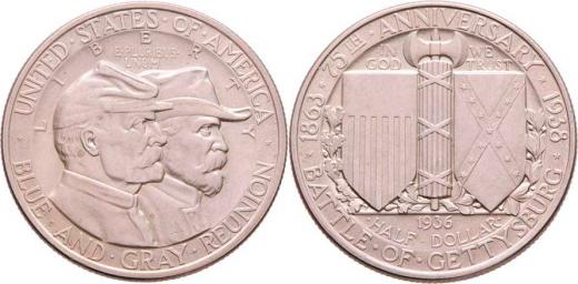 1/2 Dolar 1936 - Gettysburg, KM.181 (Ag900, pouze 26.928 ks), 12.538g, nep.rysky, krásná patina RR!