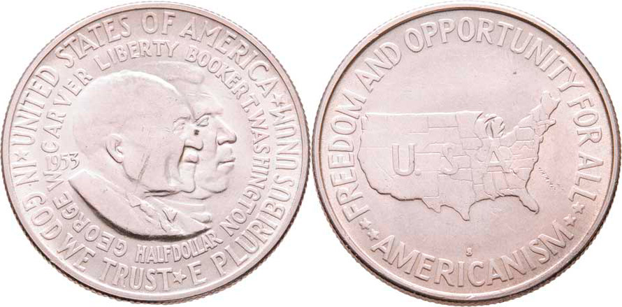 1/2 Dolar 1953 S - B.T.Washington a G.W.Carver, KM.200 (Ag900, pouze 8.003 ks), 12.602g, dr.rysky