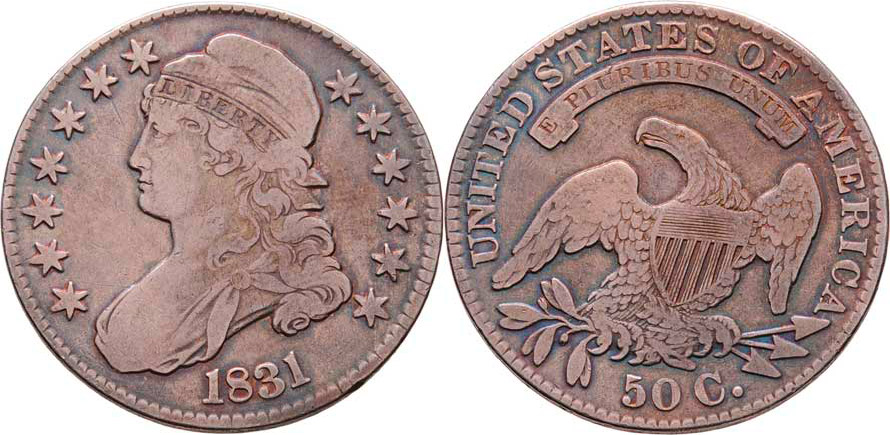 50 Cent 1831 - hlava Liberty, KM.37 (Ag892), 13.196g, nep.hr., dr.rysky, pěkná patina