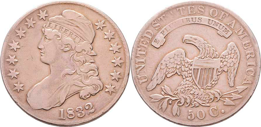 50 Cent 1832 - hlava Liberty, KM.37 (Ag892), 13.157g, nep.hr., dr.rysky, pěkná patina